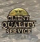 “Client Quality Service” Tac Pin Gold Tone Metal Which Can be worn on a Lapel, Tie , Shirt , Sweater Or On A Scarf . Measurements 3/4” x 3/8”