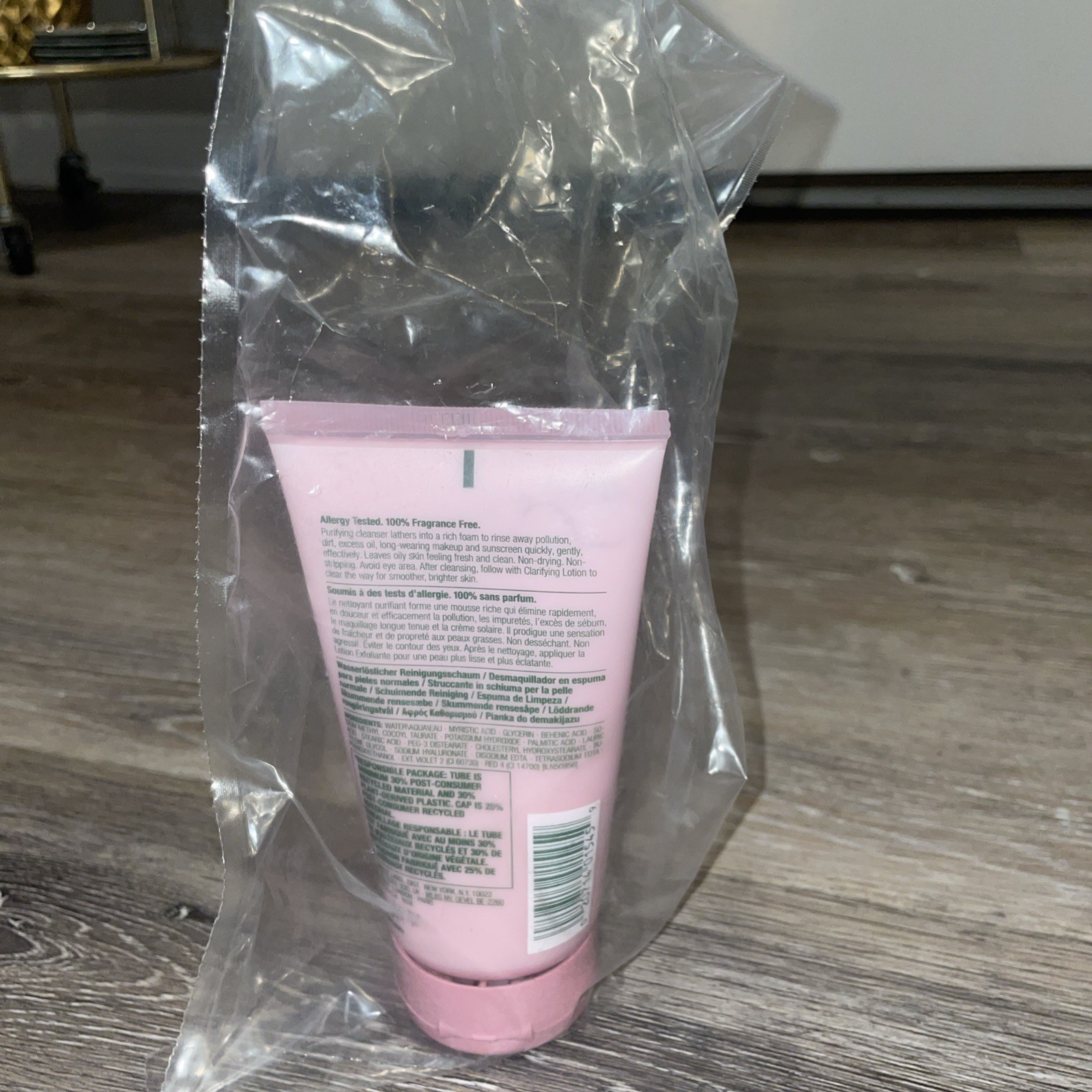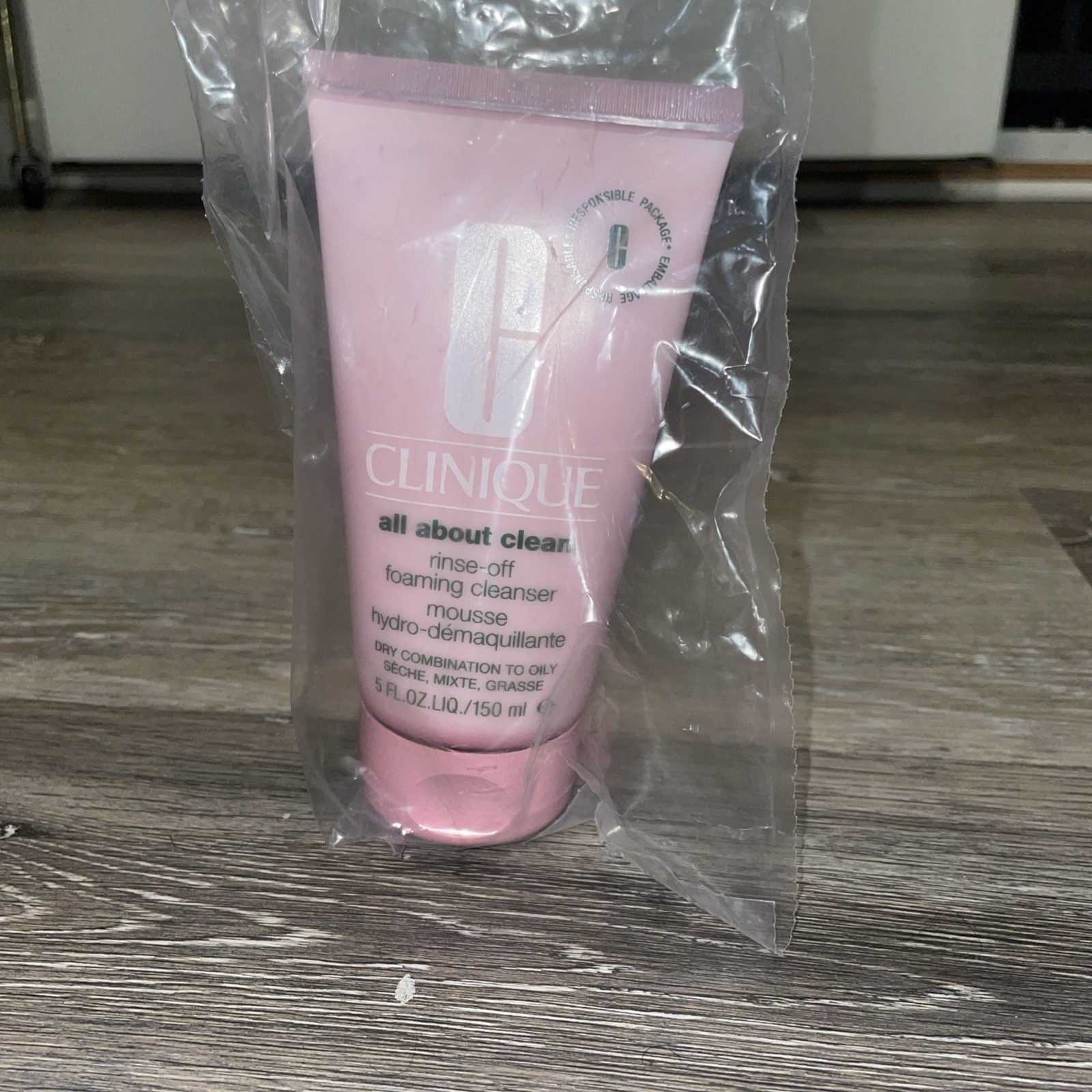 Brand new still sealed in the plastic The Clinique Rinse Off Foaming Cleanser Face Wash is a 5oz. bottle of all-purpose cleanser suitable for all skin types. This unisex product by Clinique features a foam formulation with natural ingredients like water, methoxycinnamate, linseed oil, and vitamins. It is paraben-free, oil-free, and contains glycolic acid for gentle exfoliating effects. With its Sun Protection factor and Cruelty-Free certification, this cleanser is a safe and effective choice for achieving clean and healthy skin.