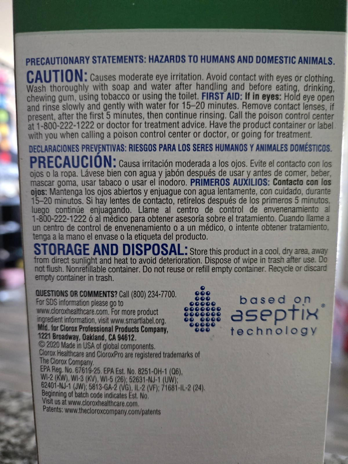 This Clorox Healthcare Hydrogen Peroxide Cleaner Disinfectant Wipes packet contains 60 individual pieces that can be used to clean and disinfect various surfaces in businesses and industrial settings. The wipes are formulated with hydrogen peroxide and other disinfecting agents that can effectively kill germs and bacteria, ensuring a clean and hygienic environment. The wipes come in a convenient wipe form, making them easy to use and carry. They are EPA registered and have been proven to be effective against a wide range of viruses and bacteria. With an expiration date of 1/23, these wipes are a great addition to any cleaning and janitorial supply cabinet.