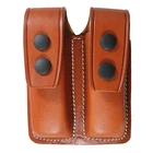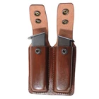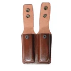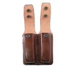 ★ Material: High-quality leather ★ Closure: Closed design with snap ★ Compatibility: Fits most standard magazines ★ Design: Closed double magazine pouch ★ Features: Designed to fit magazines snugly and securely with snaps ★ Durability: Designed to withstand wear and tear from daily use ★ Dimensions: Varies depending on the size of the magazines being carried ★ Color options: Varies depending on the manufacturer and model ★ Handmade: Yes, each pouch is handcrafted by the seller ★ Usage: Perfect for gun owners who want a convenient and secure way to carry two spare magazines while keeping them concealed on their person