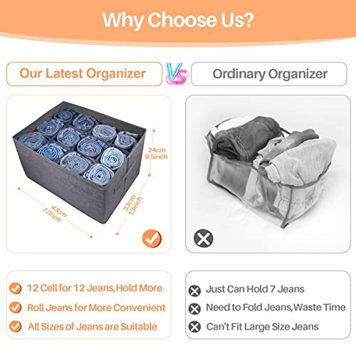 Menu 1. We require immediate payment. 2. We currently accept payment via eBay managed payments only. 3. Once payment is cleared, we will dispatch your shipment within 1-3 business days. Please refer to the "Shipping" tab for more information regarding shipping speed to your destination. Closet Organizers and Storage Bins for Clothes - 12 Cell Drawers Organizer Grid Storage Box for Jeans Pants Sweater Towel T-shirts, Wardrobe Shelf Dividers Closets Organization (1 Pcs) Product description Not Limited by Size: The new design "Roll" storage method breaks away from the limitations of general storage bins on the size of trousers, it's suitable for any size of trousers, suitable for both adult oversized trousers and kid's trousers Increase Space Utilization by 90%: A storage box can hold 12 pairs of jeans, it can improve the space utilization rate by 90%, and can also organizer sweater, t-shirt, towel, etc. One closet organizer bin for multiple uses, make your storage more convenient, more space-saving, more time-saving Upgraded Material: This closet shelf organizer is made of cationic fabric + high hardness plastic board. plastic board strengthens the support of the clothes drawer organizer and improve the deformation, collapse and other problems when using. Compared with non-woven fabrics, cationic fabric not only have the functions of corrosion resistance, radiation protection and anti-static, but also are softer, more wear-resistant, less wrinkled, safer and more environmentally friendly High Frequency of Use: This foldable and stackable clothing organizer bins is very suitable for family use for saving space. it is suitable for storage in drawer, closet, wardrobe, bedroom, dresser tables, underbed, dorm, bathroom etc. you will often use it Save Space and Time: This jeans organizer can solve most of the daily clothes storage problems and keep your living space organized, greatly improve the utilization rate of your wardrobe space, make it easier for you to organize and store clothes at home, reduce your workload, and save time spent on organizing clothes PLEASE MESSAGE US IF YOU HAVE ANY OTHER QUESTIONS, AND MANY THANKS FOR READING ALL OF THIS. Copyright ©#. All Rights Reserved.
