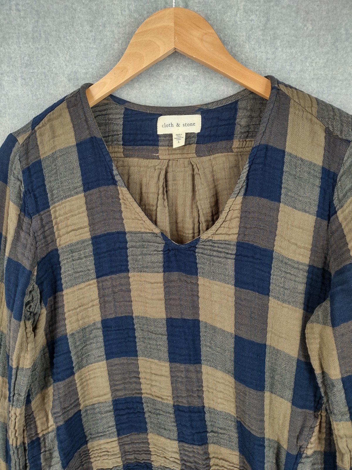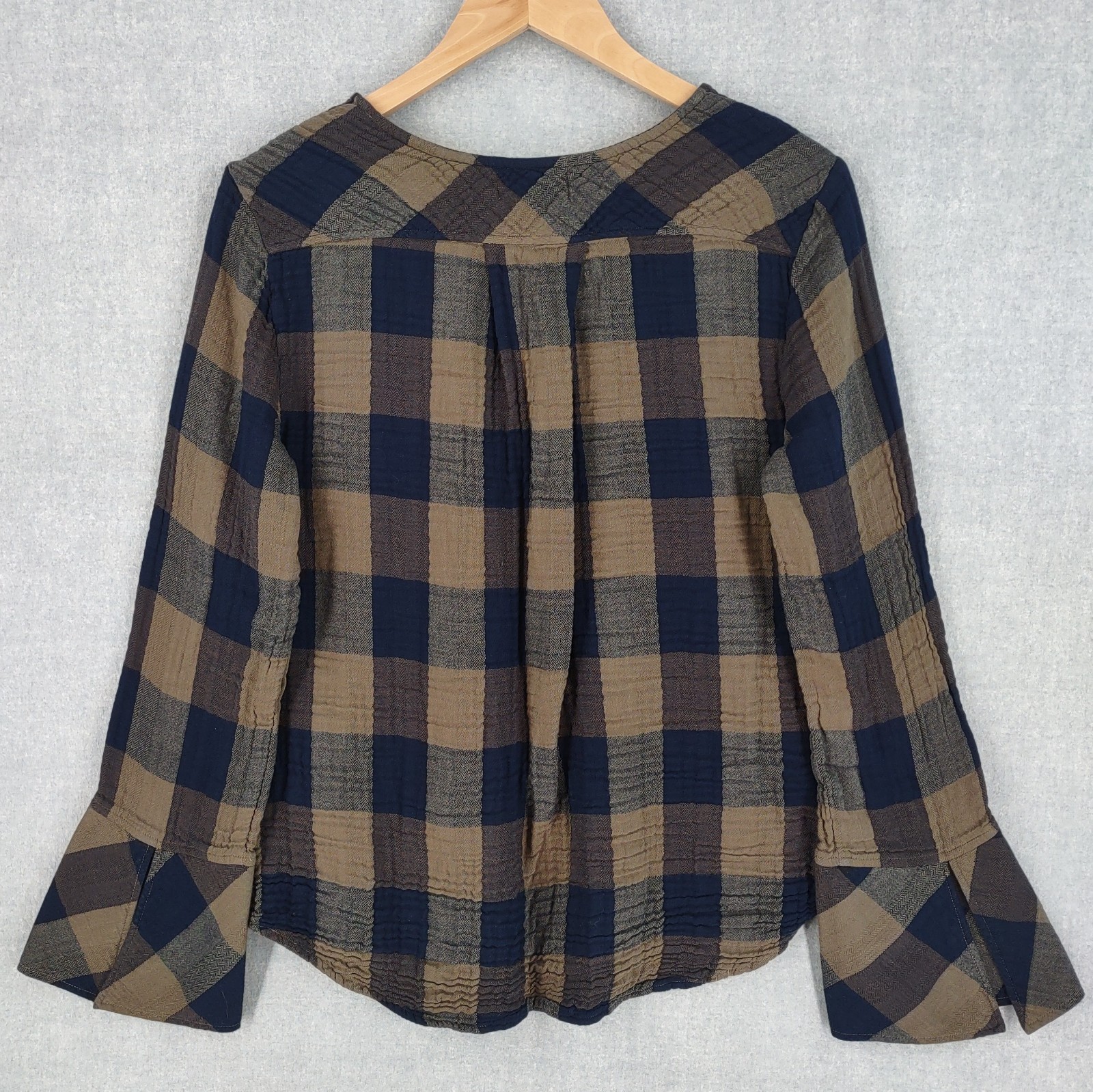 Welcome to Aspen Crossing, your destination for modern western bohemian style reflecting the rugged beauty of our American West Cloth & Stone Anthropologie Top Large Greenish Brown and Blue Gingham Plaid Gauzy Relaxed Split Bell Sleeve V-neck Tie Asymmetric Bohemian It is always best to compare the measurements above with a top that fits you comfortably. CONDITION - Excellent pre-owned condition. All items are cleaned per EBAY standards. Not spot treated. See the photo gallery to view this items measurements and condition. SHIPPED - USPS First Class Mail unless item weight requires priority mail. RETURNS accepted, must be returned within 30 days in original condition to receive a full refund. SHIPPING AND HANDLING We ship all packages within five business days Monday through Friday except Holidays. Consolidated shipping is available for multiple purchases. Thank you for helping our planet and buying previously owned and loved items. I am grateful for your business. Enjoy! Check out our eBay store and follow us. There are new listings daily. CUSTOM SKU: Disclaimer: While we make every effort to capture the most accurate depiction of every item when photographing, colors may vary from screen display to in person therefore we cannot guarantee exact shade on any item. Message us if you have questions.