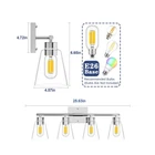 Cloud Fire Bathroom Vanity Light Fixtures Chrome, 4-Light Bathroom Light Fixtures Over Mirror with Clear Glass Shade, E26 Vanity Light Wall Sconce for Bedroom Hallway Farmhouse Product Details Size: 4 Lights Brand: Cloud Fire MPN: YSD-04 UPC: 752895777221 EAN: 0752895777221 Brand: Cloud Fire Color: Chrome Material: Metal Style: Modern Light fixture form: Sconce Product Dimensions : 9 x 8 x 19 inches; 4.4 Pounds Item model number : YSD-04 Date First Available : December 10, 2021 Manufacturer : Cloud Fire Country of Origin : China Customer Reviews: 4.2 4.2 out of 5 stars 91 ratings Brand: Cloud Fire Color: Chrome Material: Metal Style: Modern Light fixture form: Sconce Room Type: Bathroom, Bedroom, Farmhouse, Living Room, Hallway Product Dimensions: 9"L x 8"W x 19"H Specific Uses For Product: Home Indoor/Outdoor Usage: Indoor Power Source: AC Installation Type: 半嵌入式安装 Special Feature: Dimmable Control Method: Remote Light Source Type: LED, Incandescent Finish Type: Polished Shade Material: Metal Number of Light Sources: 4 Voltage: 110 Volts Light Color: White Included Components: Lamp holder, lampshade, Accessories packbage Embellishment: Crystal Lighting Method: LED, Incandescent Item Weight: 4.4 Pounds Number of Items: 1 Wattage: 60 watts Bulb Base: E26 Controller Type: Push Button Unit Count: 1 Count Brightness: [800, ?] lumens Mounting Type: Wall Mount Shade Color: Transparent Fixture Type: Non Removable Assembly Required: No Manufacturer: Cloud Fire UPC: 752895777221 Model Name: YSD-HW Part Number: ysd-04a Item Weight: 4.4 pounds Country of Origin: China Item model number: YSD-04 Finish types: Polished Special Features: Dimmable Plug Format: A- US style Batteries Included?: No Batteries Required?: No Date First Available: December 10, 2021 UNIQUE DESIGN: After many optimizations, our chrome bathroom vanity light fixtures has better stability, and supports installation in an upward or downward position, suitable for your installation design in different rooms. HIGH QUALITY MATERIAL: Indoor vanity lighting fixtures main body is made of hard metal, and the transparent glass lampshade makes the lamp holder dust-proof and waterproof and does not affect the lighting effect. The polished chrome finish and lamp shade create the perfect ambience, perfect for any room of yours, whether it's a bathroom, hallway or farmhouse. EASY INSTALLATION: All the accessories and screws you need to install the chrome vanity light is included in the package, just follow the illustrated instructions provided for assembly and installation for a quick and easy installation. (No on/off switch or plug) BULB TYPE: The 25.63 Inch bathroom light fixtures Based on E26 specification and bulb design less than 60W, suitable for bulbs such as Edison bulbs, flame bulbs, incandescent bulbs and LED bulbs. (bulbs not included) You can also choose a dimmable bulb with an adjustment switch for adjusting the light. (Switch and bulb not included) AFTER-SALE SERVICE: If you have any questions about the quality, parts, connection method of the wall sconces during installation, please contact us, we will reply within 24 hours until you solve the problem. Payment Back to Top We accept Paypal and All Major Credit Cards. Shipping & Handling Back to Top Item will be shipped FREE standard shipping in 1 business day after payment is received. Express Shipping services are available. Tracking number will be provided. Return Policy Back to Top Items can be returned for exchange or full refund within 30 days from the date you receive your merchandise. Please contact us before starting a return request, so we can resolve any issues and provide free returns if needed. Return shipping is the responsibility of buyer unless the return is a result of our mistake (i.e., your receive the wrong item). Contact Us Back to Top If you have any questions please contact us. We will respond within 1 business day or less.