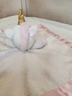 Keep your little one cozy and secure with this adorable Cloud Island Baby Security Blanket/Unicorn in Light Pink. Made with soft and cuddly material, this blanket is perfect for snuggling up with your baby during nap time or when they're feeling fussy. The unicorn design adds a touch of whimsy to the blanket, making it a fun addition to your baby's toy collection. With its pink color and Cloud Island brand name, this blanket is a must-have for any parent who wants to keep their baby safe and comfortable. Whether you're at home or on-the-go, this blanket is the perfect companion for your little one.#small sharpie mark underneath corner.