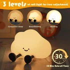 Cloud Night Light, LED Cute Lamp, Silicone Squishy Lamp Rechargeable Product Details Finish Type: Silicone Base Material: Silicone Product Dimensions: 5.51"D x 5.16"W x 3.62"H Item Weight: 0.39 Pounds Lamp Type: Night Light Shade Color: White Shade Material: Silicone Switch Type: Touch Style: Cloud Brand: YISUN Color: Cloud Special Feature: Portable, Dimmable, Rechargeable Light Source Type: LED Material: Silicone Room Type: Office, Kids Room, Entryway, Bedroom, Living Room, Patio, Study Room, Nursery Recommended Uses For Product: Decoration, Everyday Use, Camping, Hiking, Reading Power Source: Battery Powered Shape: Cloud Controller Type: Push Button Connectivity Technology: USB Included Components: 1*Night Lamp;1*Type-C cable Age Range (Description): over 3 years old Is Waterproof: False Mounting Type: Tabletop Wattage: 2 watts Number of Items: 1 Lighting Method: Adjustable Control Method: Touch Indoor/Outdoor Usage: Indoor Specific Uses For Product: Decoration, Nursery light, Travel and Car Night Light Gifts for Festival Home and Room Decor, Reading, Sleep Aid Installation Type: Freestanding Voltage: 5 Volts UPC: 190313150988 Manufacturer: YISUN Part Number: A023 Item Weight: 6.2 ounces Country of Origin: China Item model number: A023 Batteries: 1 Lithium Ion batteries required. (included) Finish types: Silicone Special Features: Portable, Dimmable, Rechargeable Batteries Included?: Yes Batteries Required?: Yes Product Dimensions : 5.51 x 5.16 x 3.62 inches; 6.24 ounces Manufacturer recommended age : 36 months - 17 years Item model number : A023 Batteries : 1 Lithium Ion batteries required. (included) Manufacturer : YISUN Country of Origin : China Finish Type: Silicone Base Material: Silicone Product Dimensions: 5.51"D x 5.16"W x 3.62"H Item Weight: 0.39 Pounds Lamp Type: Night Light Unique Design: The Cloud Night Light has a distinctive and eye-catching design. More than just a funny lamp, this Cloud lamp doubles as a stress-relief toy, making it a fun decor option. Also, a good decompression light to switch your mood Soft Silicone: Made from premium silicone and use around children. The Cloud gives off a soft glow, you can drift off peacefully. Don't be afraid of the dark! Our Little Cloud Night Light is a sleeping companion for those who are afraid of the dark Dimmable & Timer: The soft warm light won’t flicker or hurt your eyes. Cute cloud light has 3 warm light modes, you can easily adjust the light intensity. The squishy night light also has a 30-minute timer shut-off function, no need to manually close USB Rechargeable Night Light: Our Cloud squishy lamp is rechargeable using a Type-C USB cord, and a built-in 1200mAH lithium battery supports portable usage for up to 4-6 hours with one full charge. it will take about 2-3 hours with One full charge Wide Application: It’s not only a bedside lamp or kids room decoration for baby nursery, but also a portable present on party decor, Birthday, Children's Day, Halloween, Christmas, etc. It also can be a device for pressure relief and a mood bar light