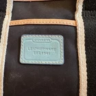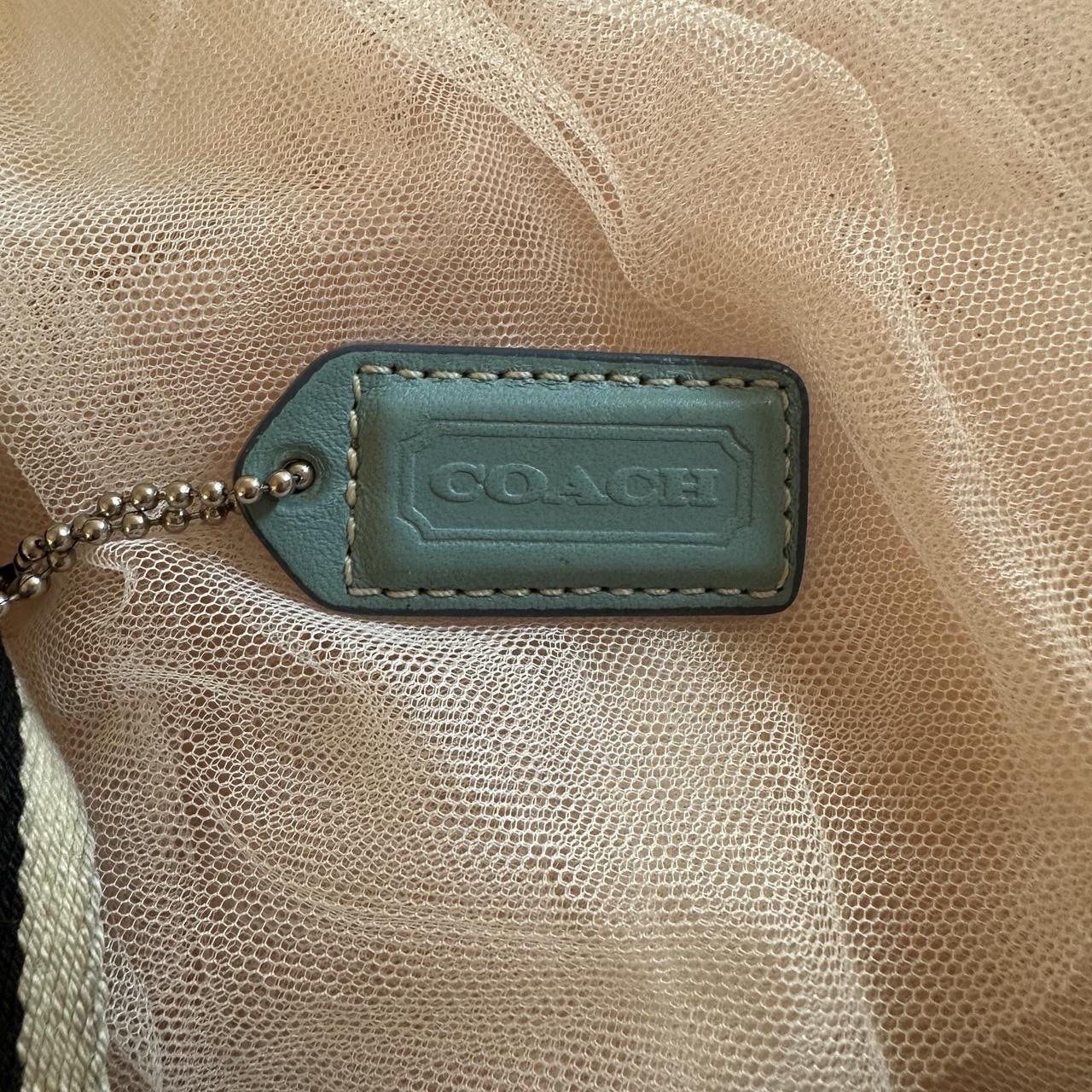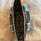 This is a gorgeous, authentic Coach mini tote from the Legacy collection (style No. M055-6268). Crafted from durable navy blue canvas with cream contrast trim, tan leather piping, and beautiful sky blue leather handles and accents. This piece is a rare colorway, with that soft robin’s egg blue leather tag and handle wrap that makes it pop. Compact but roomy enough for your essentials. Details: • Style No. M055-6268 • Navy blue canvas body with cream and tan trim • Sky blue leather handles, logo patch, and hangtag • Zip top closure • Signature “C” print interior lining • Interior zip pocket + slip pocket Pre-loved and in very good vintage condition. Canvas and leather are in great shape with only minor signs of wear (see photos). Zipper works smoothly. Interior is clean. *All sales are final. #coach #rare #y2k #vintagecoach #smallhandbag