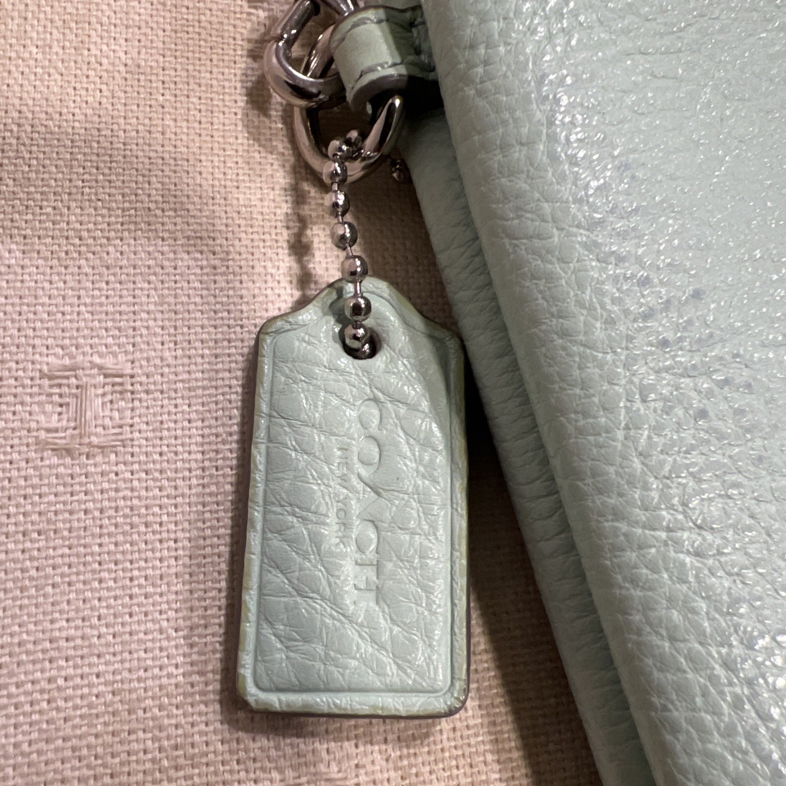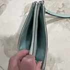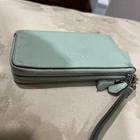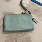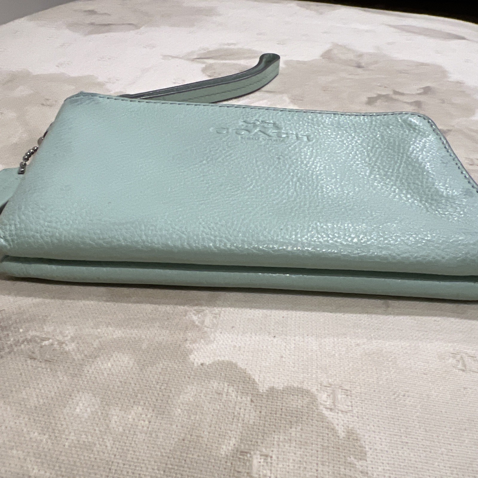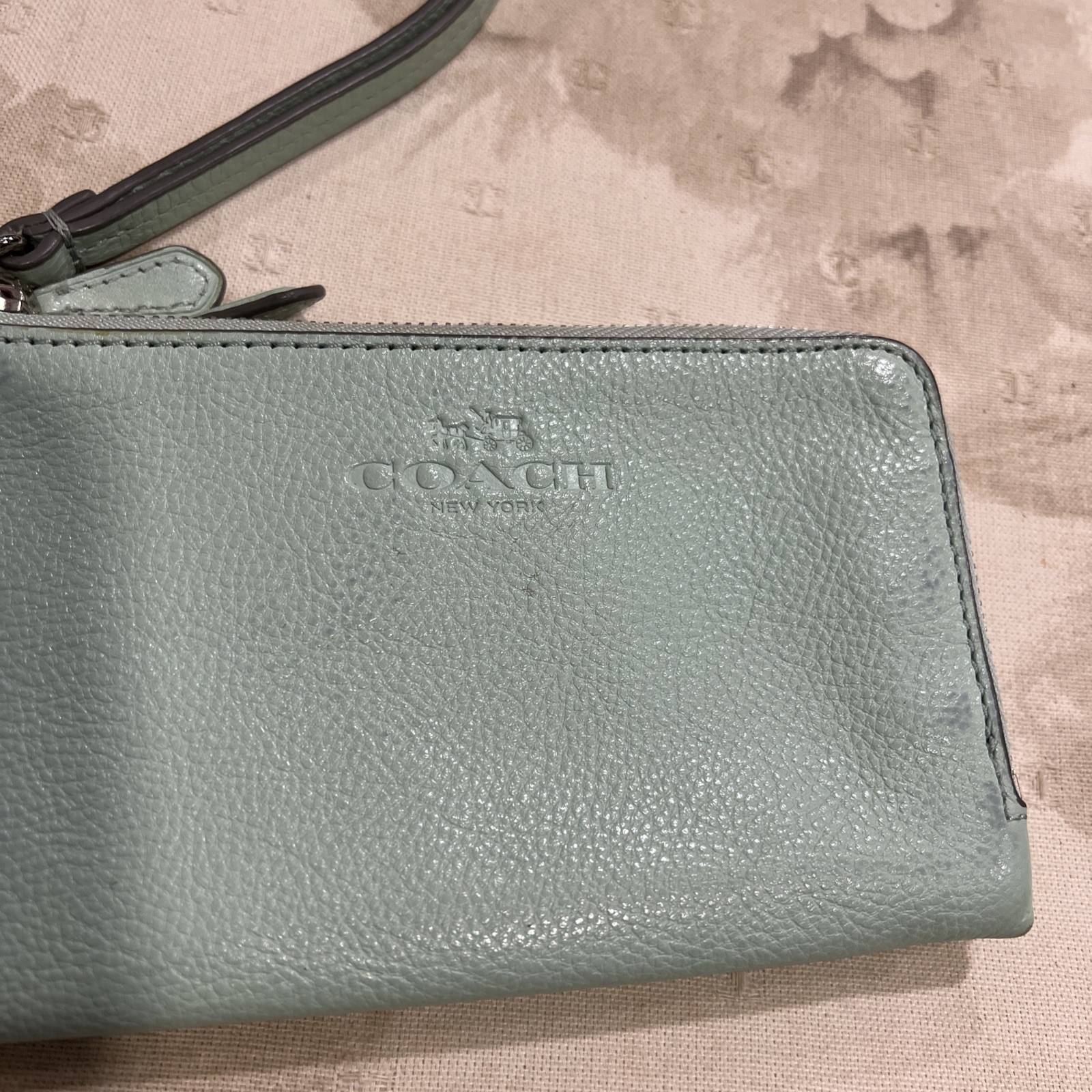 The Coach 53089 Pebbled Leather Double Zip Wallet Wristlet in Pale Green is a stylish and practical accessory for women. Made from high-quality leather, this wallet features a pebbled texture and a vibrant seagrass green color. The double zip design allows for easy access to your essentials, while the wristlet style makes it convenient to carry on the go. With slots for credit cards and a spacious interior, this wallet is perfect for keeping your belongings organized and secure.