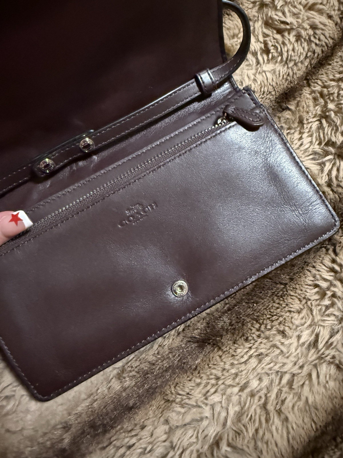 The Coach 66690 Floral Sadie Crossbody Clutch is a stylish and compact accessory designed for women. Made from leather with a floral pattern, this rectangular-shaped clutch features a convenient crossbody strap handle style. The double zip closure adds a touch of sophistication, while the pink multi exterior color gives it a trendy and vibrant look. Perfect for carrying essentials in a fashionable way, this clutch by Coach is a must-have item for any fashion-forward woman. The strap detaches so you can use it as a clutch or wallet.