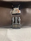 This Coach Lenox Brief in brown leather is a versatile crossbody bag with a vintage touch. It features a solid pattern with a strap accent . The bag has a magnetic catch fastener and an adjustable cotton strap with a brown color. The bag is large with dimensions of 12 inches for the width and height, and 5 inches for the depth. It has inner dividers and credit card slots for added organization, and it comes with a detachable strap, pouch, key holder, and handle keeper as accessories. The bag is part of the Coach Legacy product line and comes with a certificate of authenticity. The bag is suitable for both men and women and has a bohemian and city theme.