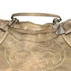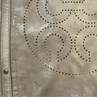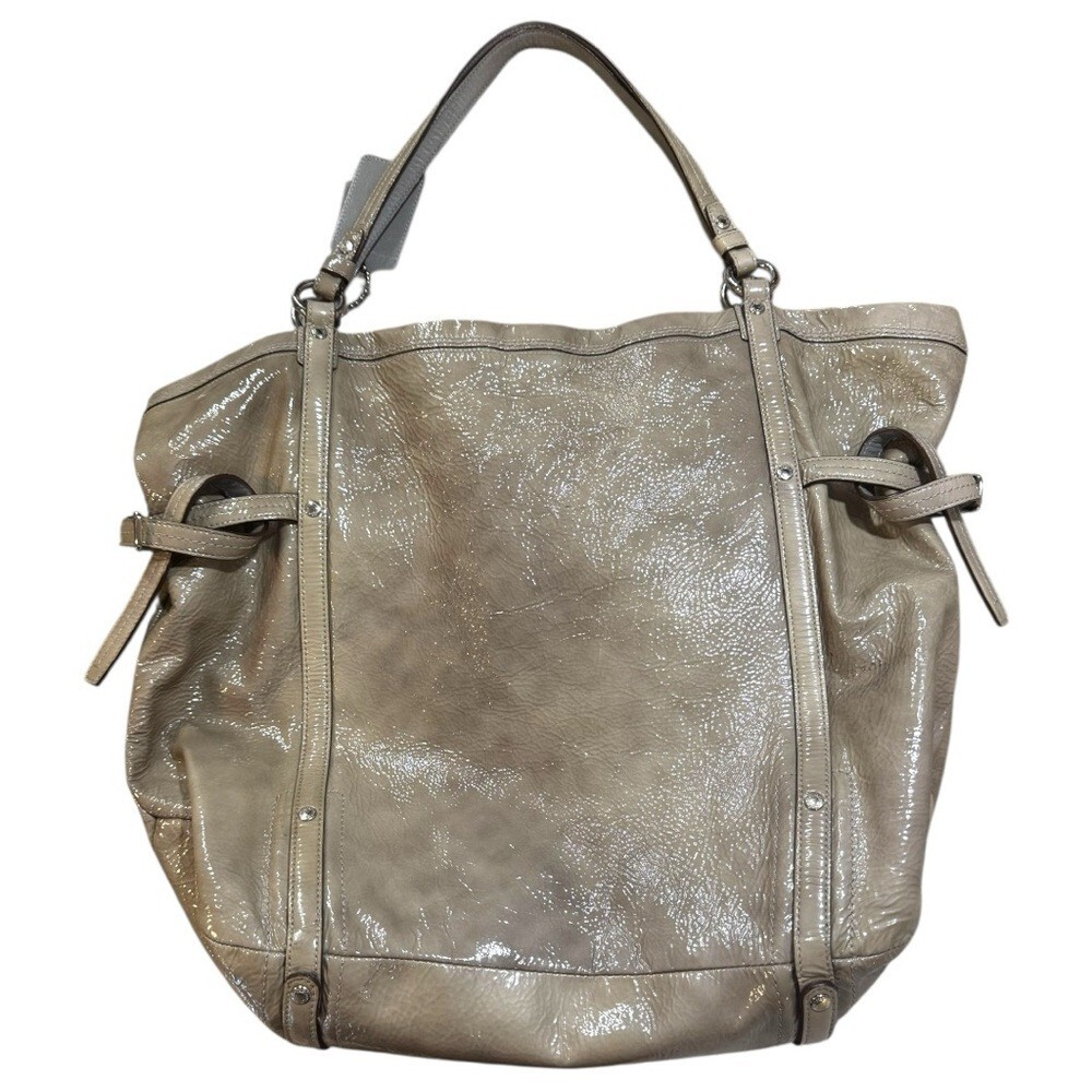 One of Coach’s most iconic silhouettes—this Coach Audrey Tote No. 17063 is a highly sought-after, early 2000s staple, celebrated for its structured shape and sophisticated shine. Done in a rich taupe gray beige undertone patent leather with a smooth glazed finish, this chic tote features expandable sides, silver-tone hardware, and two original hangtags. A classic Y2K style making its return to trend, this piece is ideal for the modern woman on the go. Spacious enough to fit a laptop, tablet, and daily essentials while maintaining timeless polish. • Style: Coach Audrey No. 17063 Patent Leather Tote • Color: Shiny Taupe Gray (Patent Leather Finish) • Hardware: Silver-tone with Coach logo engraved buttons • Interior: 1 zip pocket, 2 open slip pockets • Closure: Clip tab closure • Features: Expandable pleated sides, double rolled handles, original dual Coach hangtags • Condition: Very good pre-loved condition. One small spot of patent rub on the front and light exterior color transfer typical of this finish—see close-up. Interior is extremely clean with minimal signs of use. Ships same day or next day from a smoke-free home.