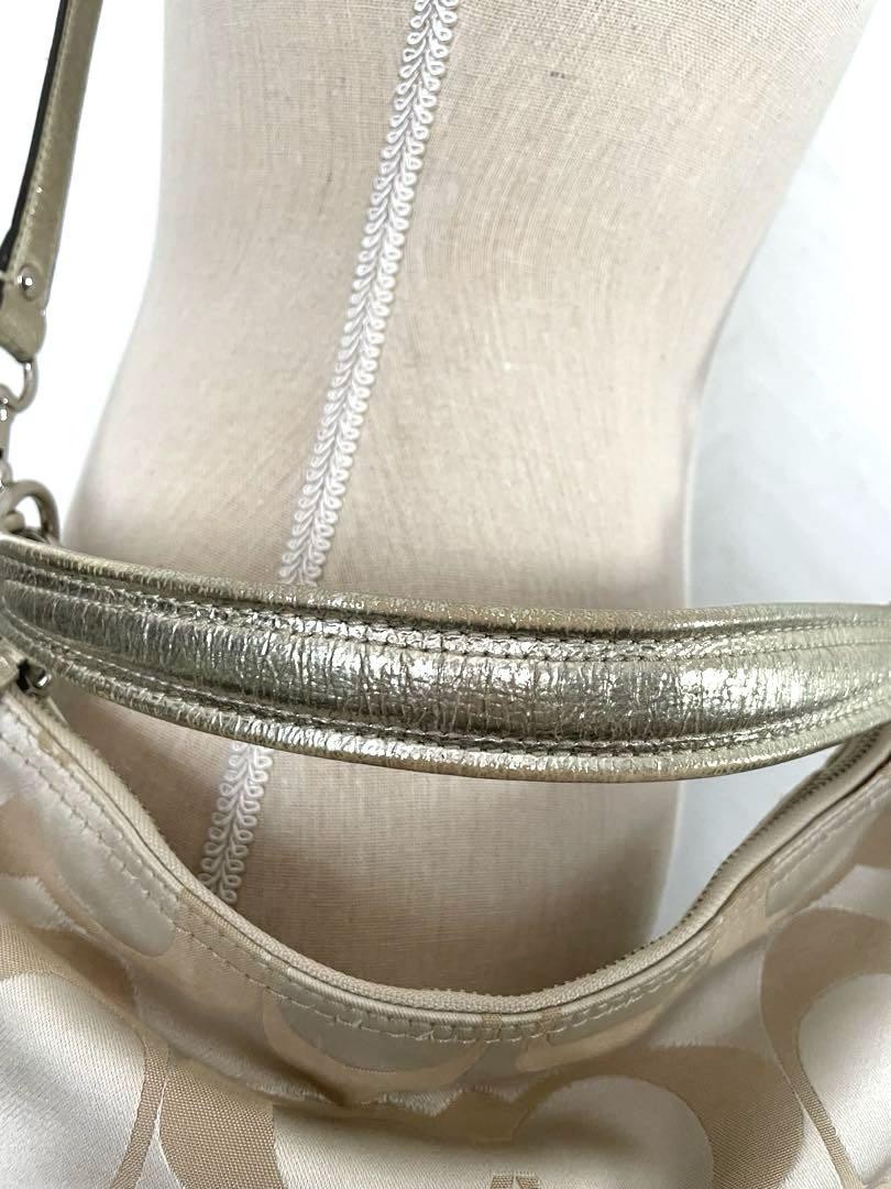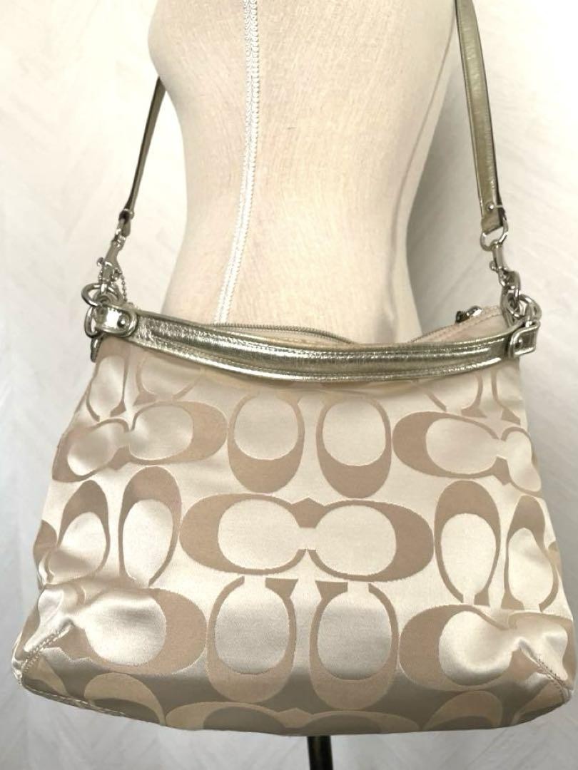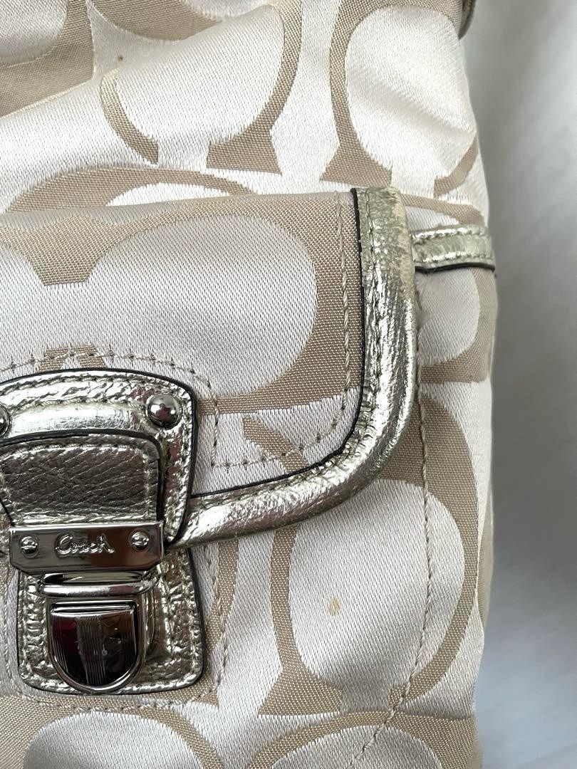 Coach Beige Logo Print Zip Top Shoulder Bag