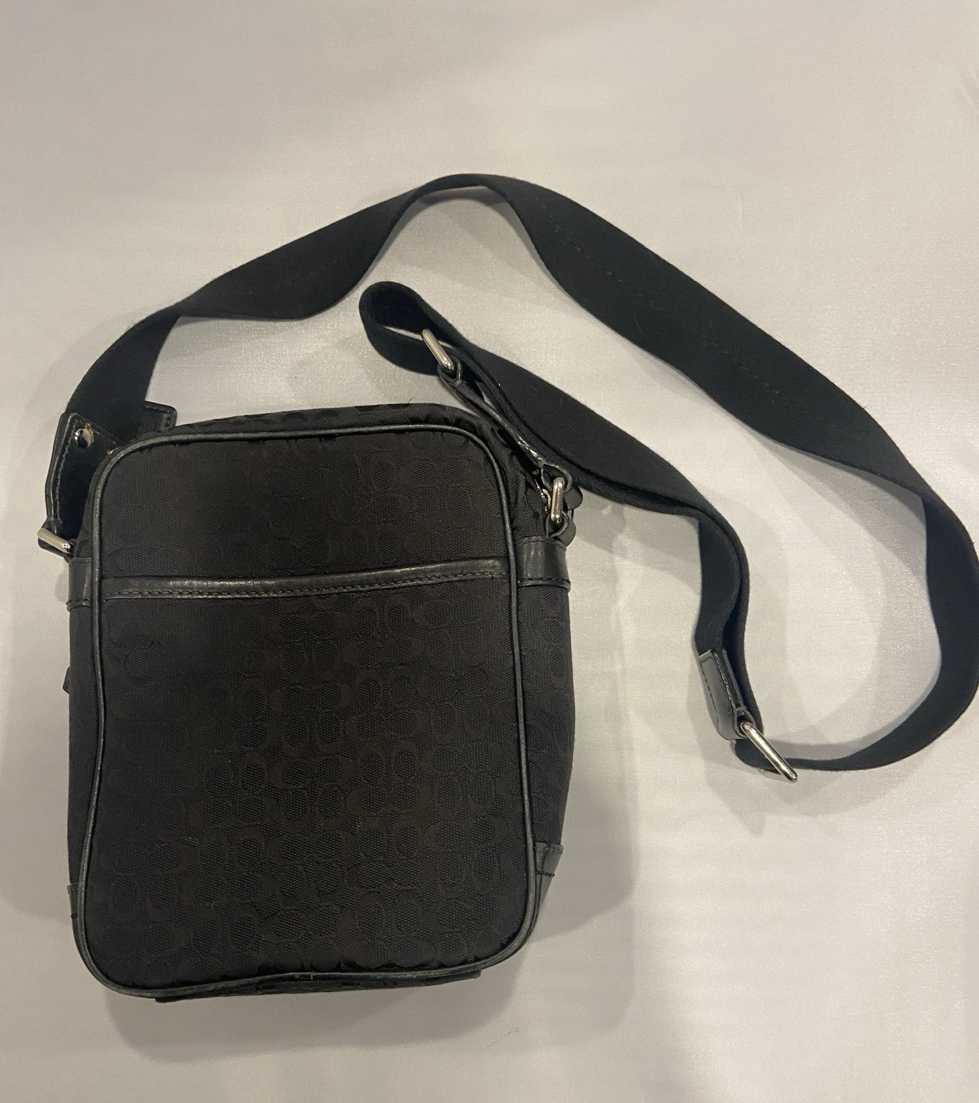 This Coach crossbody is a must-have! The black canvas with logo print looks chic, and the size is perfect for essentials. The strap is comfortable, and the zip closure keeps everything secure. Love the green lining—adds a nice pop of color. Barely used and in excellent shape. Great for everyday wear!
