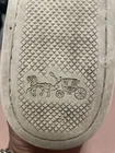 Elevate your style with these beautiful Coach women's loafers. The black floral pattern on the coated canvas upper adds a touch of elegance to any outfit, whether for travel or casual wear. The round toe shape and slip-on closure ensure a comfortable fit, while the rubber outsole provides slip resistance and waterproofing. These loafers come in a size 7.5 US/37.5 EU with a medium width and feature the Coach logo as an accent. They are perfect for any season, whether winter, summer, fall, or spring. The padded features and Coach signature product line make them a must-have for any fashion-forward woman.Good condition