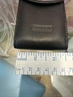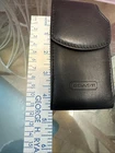 The Coach Black Leather Flip Phone Carry size 4.5in x 2.5 Case is a luxurious accessory designed for convenience. With a sleek black color, brass ring, and belt loop, this carry case exudes a stylish and practical design. Made from high-quality leather by the renowned brand Coach, this case provides protection for your phone while also allowing easy access and carrying options. Perfect for those looking for a fashionable way to keep their phone secure.