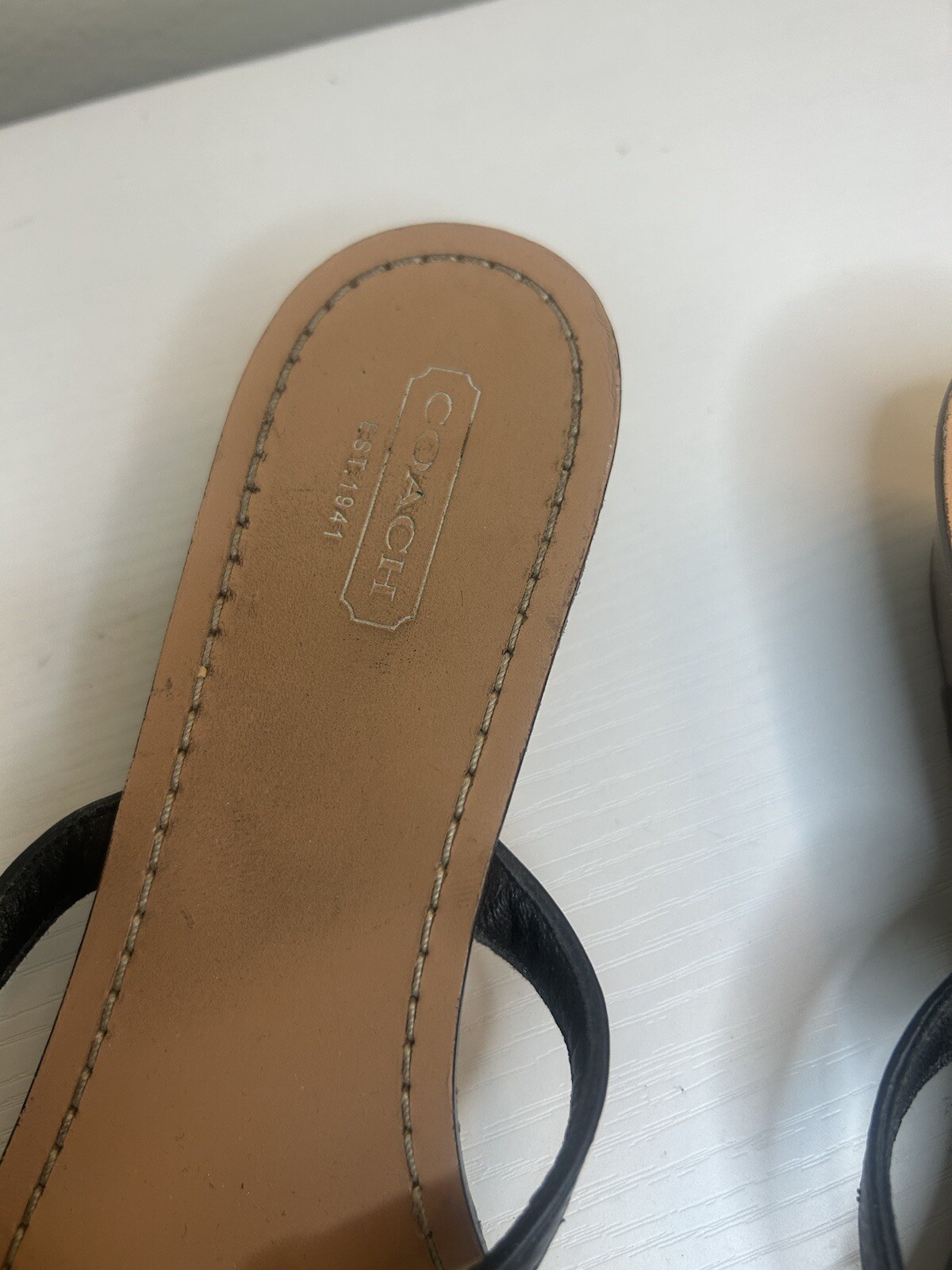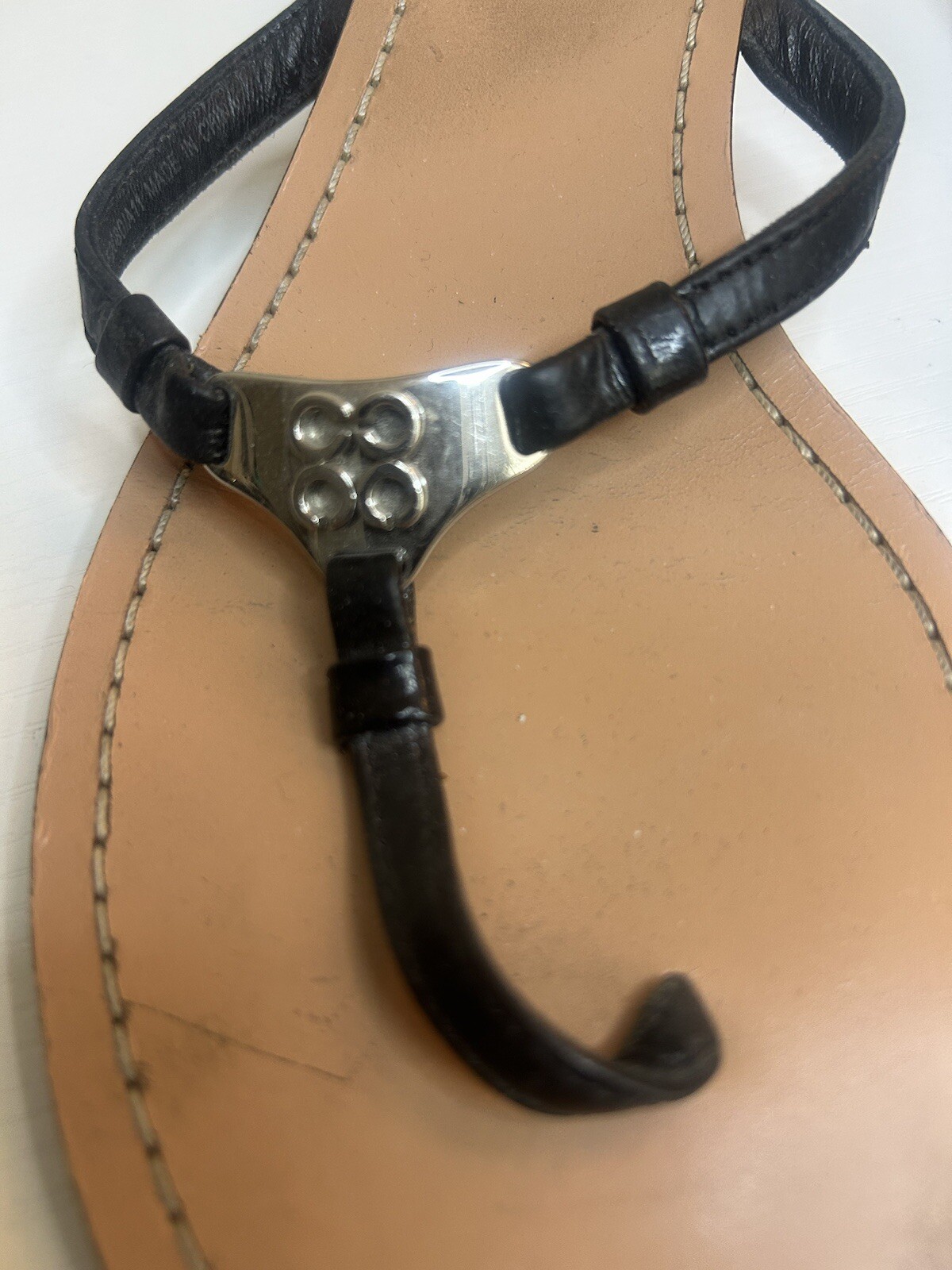 Coach Black Leather Thong Low Wedge Heel Sandals 7 1/2 B