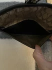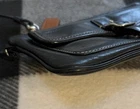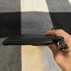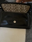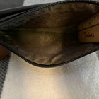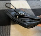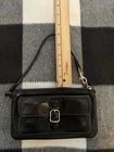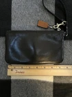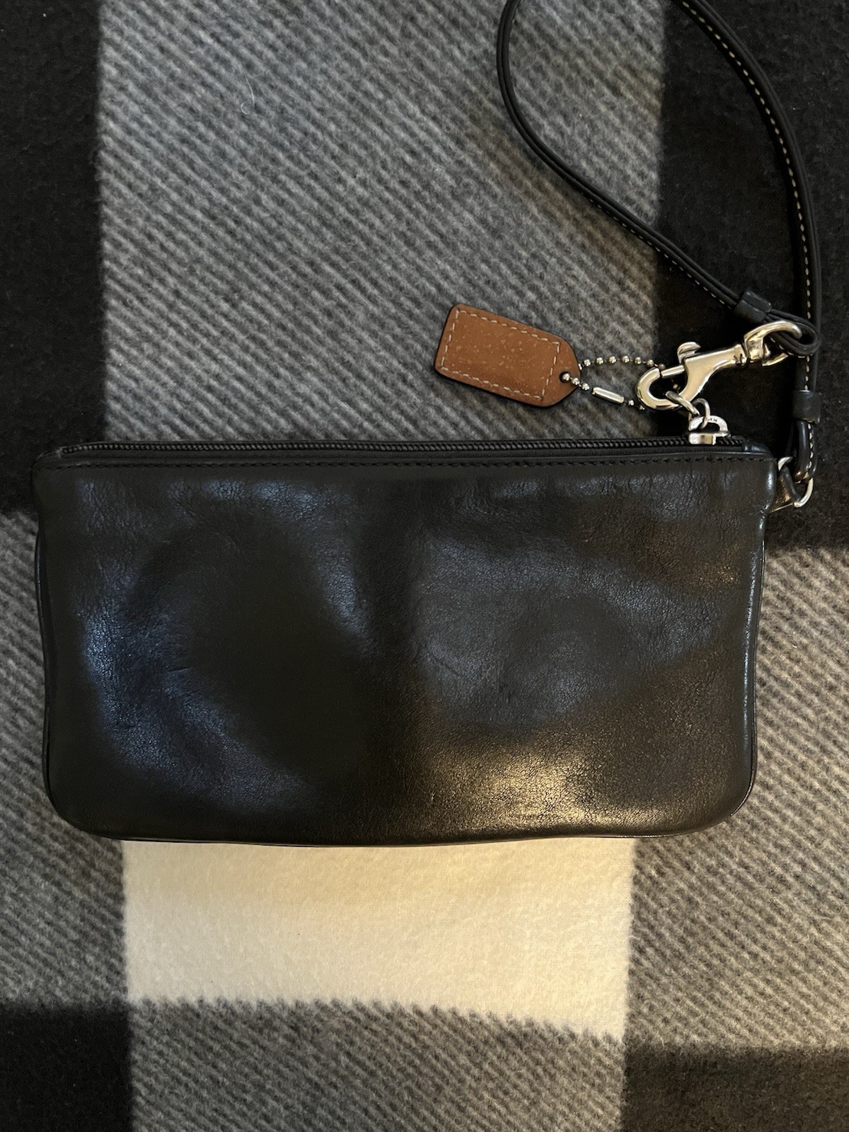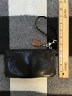 Pre-owned in fair condition- one corner has heavier wear. Otherwise, it is in good condition. The leather has been cleaned and conditioned, ready for the next owner. This is a soft leather black wristlet. One large zipper compartment, smaller compartment with magnetic snap closure. Leather strap, silver tone hardware. Classy and timeless style. Add to your collection! Please zoom in the last two photos for condition and check photos for dimensions.