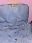 This Coach handbag/crossbody bag is the perfect addition to any collection. With a beautiful blue exterior color and durable canvas material, it's both stylish and functional. Measuring 14 inches in width, 12 inches in height, and 3 inches in depth, it's a medium-sized bag that's perfect for everyday use. The strap drop of 22 inches allows for comfortable wear, and the blue handle/strap color adds a pop of color to the design. The bag features a Coach D1193 model and is categorized under Clothing, Shoes & Accessories and Women's Bags & Handbags. Whether you're running errands or going out with friends, this Coach bag is a versatile and fashionable choice.