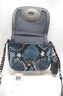 The Coach blue python snakeskin bag 34516 is a luxurious and stylish crossbody handbag designed for women. Made with animal print blue python snakeskin as the exterior, this small-sized bag has a striking design that is perfect for adding a touch of sophistication to any outfit. The gunmetal hardware, blue handle/strap, and black lining complement the overall theme of the bag, making it a versatile accessory for various occasions. Crafted by the renowned brand Coach and made in Vietnam, this designer handbag is a must-have for those who appreciate high-quality and fashionable items. Coach Blue faux Python Snakeskin 34516 The bag is new with the original sales tag MSRP $375 There are a couple of very light marks and 1 scratch on the flat metal plate on the flap. They are from storage. I was not able to capture the marks in the photographs. Otherwise, the bag seems new. Please feel free to ebay message me with any questions or concerns you may have. Thank you for looking at my sales.