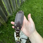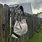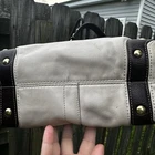 Leather has some wear, shown in pics. Straps and hardware are in good condition. Inside has some minor staining.