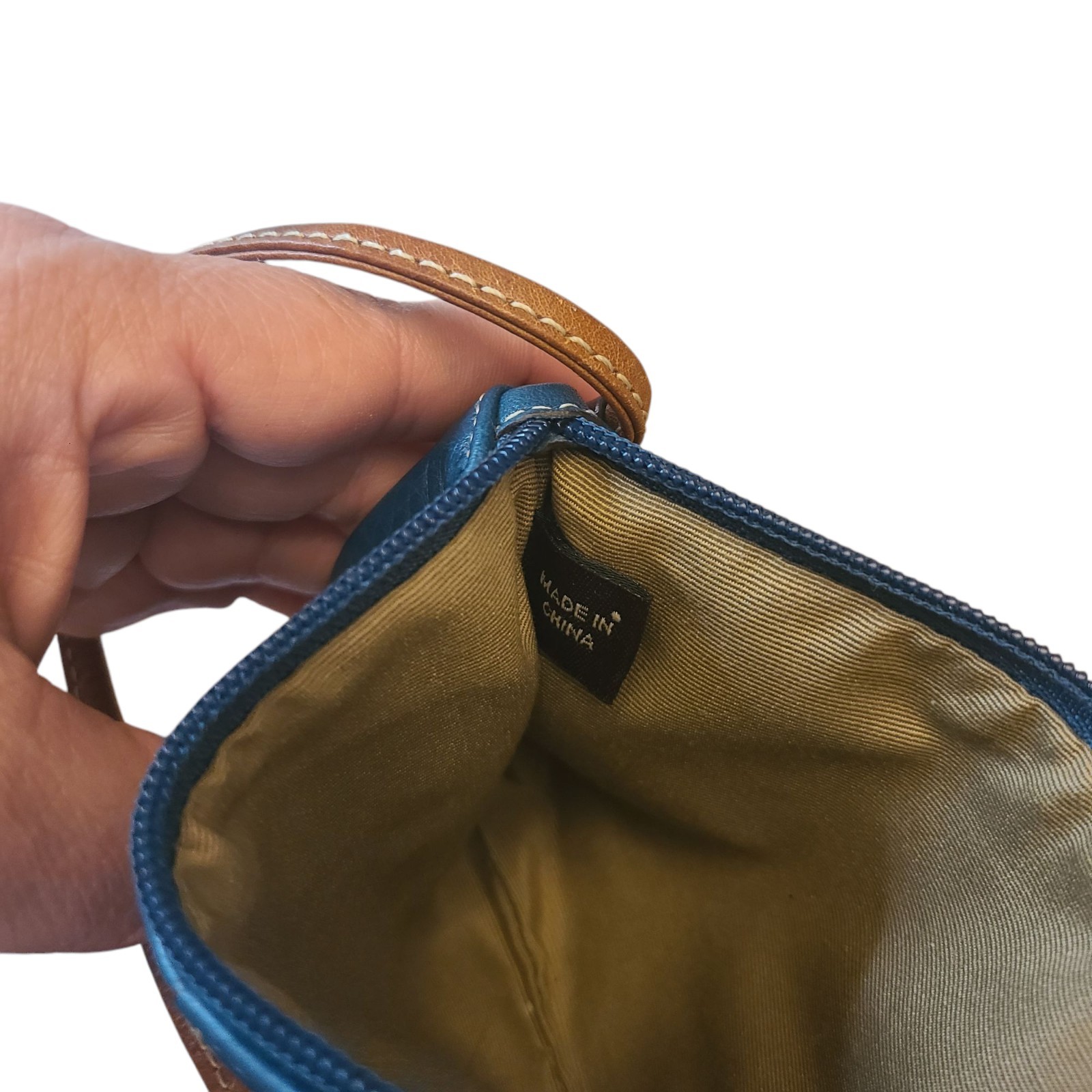 Coach Brown Teal Pebbeled Leather Wristlet Bag With Hang Tag. Please take a look at all of the pictures of this item for its actual condition. Peeling on the strap. I do combine shipping