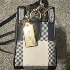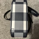 This NWT Coach Buffalo Plaid Navy Blue/Ivory Crossbody is a stylish and versatile accessory for women. Made from coated canvas with a leather crossbody strap, this small-sized bag features a double compartment, double zip closure and a fabric lining. The gold hardware accents the classic plaid pattern, making it a rare and unique piece for any outfit. Complete with a wristlet and bag charm, this crossbody is perfect for on-the-go fashionistas looking to add a touch of sophistication to their look. Comes from smoke pet free home