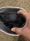 UW: The purse tag is not included. Condition is excellent no flaws or imperfections. The Coach C2822 Small Dempsey Blue Signature "C" Canvas Camera Bag is a stylish women's handbag with a small size of 8 inches in width, 5 inches in height, and 3 inches in depth. This crossbody bag features a zip closure, blue exterior color with the signature C pattern, and gold hardware accents. The exterior is made of canvas and leather, with a blue fabric lining. The handle/strap is a woven polyester material in a multi-color combination, making it a trendy and practical accessory for any outfit.