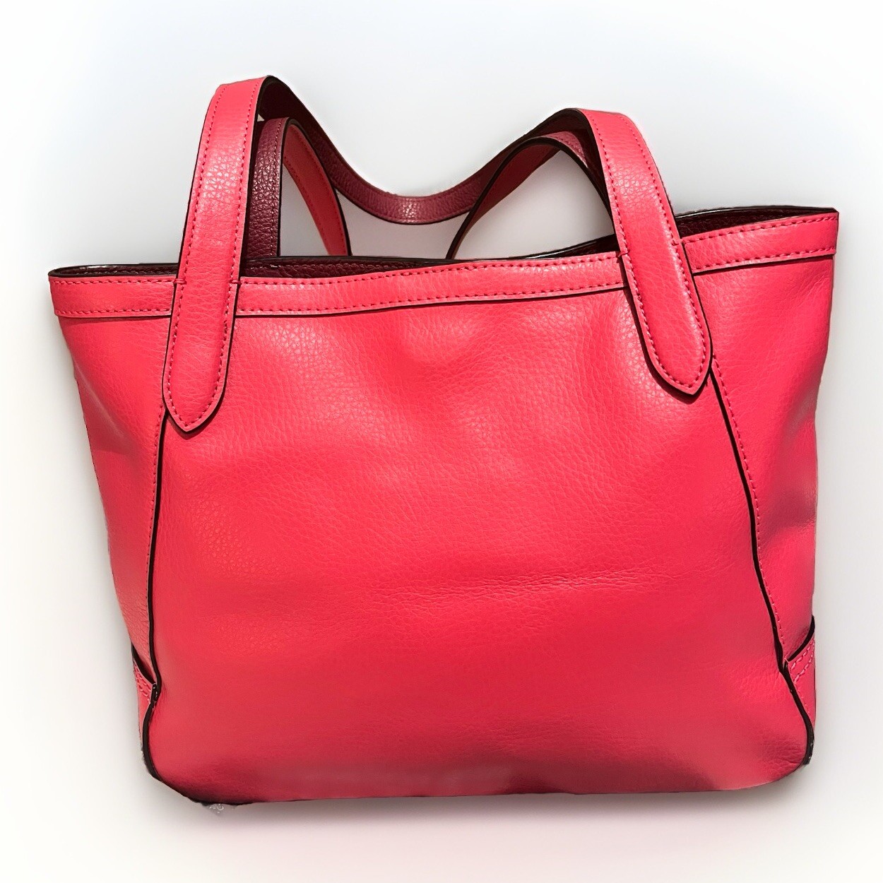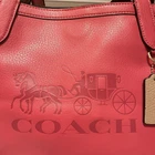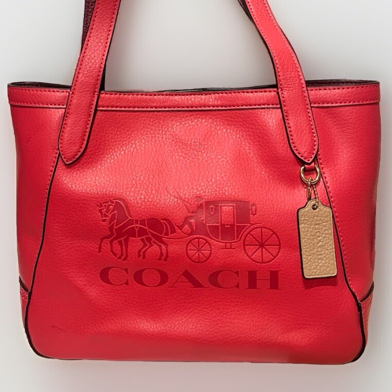 Coach Tote 27 with Horse & Carriage – Genuine Leather, Magnetic Snap Closure, featuring the iconic Horse and Carriage logo. Custom insert hides the minor interior flaw - perfect for someone who wants a luxury bag at a lower price. This bag is pre-owned and in great condition on the outside, showing no visible damage, scratches, or scuffs. The handles and stitching are clean and sturdy. Inside, there is a stain on the suede bottom, which unfortunately does not come out. To keep the bag looking fresh, we’ve created a custom insert in a matching color that fits perfectly inside and covers the stained area. When the insert is in place, the interior looks clean and the stain is completely hidden. Features: Material: Pebble leather exterior, suede interior Closure: Magnetic snap closure for easy access Dimensions: Width: 11 inches Height: 9 inches Depth: 5 inches Handle Drop: 9.5 inches Interior: One zippered pocket for essentials Accent: Iconic Horse and Carriage logo detail, metal hardware Condition: Pre-owned, interior stain covered by custom insert