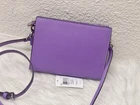 Coach CAT21 Slim Crossbody Pebbled Leather Iris Handbag Brand new with tags 100% Authentic Color: silver/Iris Style Number CAR12 Measurements Length: 7.75" Height: 5.5" Width: 1.25" Materials Signature coated canvas Fabric lining Strap Chain strap with 22.5" drop for shoulder or crossbody wear Features Two credit card slots Zip-top closure Price is firm