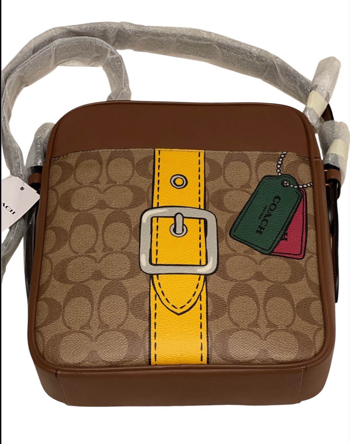 The Coach (CH200) Hudson 21 Medium Khaki Trompe L'oeil Print Crossbody Bag is a stylish and versatile accessory perfect for casual outings, parties, travel, and workwear. Made of leather and PVC with a coated finish, this rectangular-shaped bag features a zip closure, gunmetal hardware, and a brown crossbody strap. The Trompe L'oeil print adds a touch of designer flair to the bag, making it a fashionable choice for any occasion. With adjustable straps, inner pockets, and a lined interior, this medium-sized bag offers both functionality and style for the modern woman on-the-go.