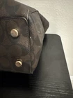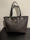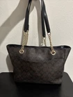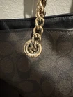 MISSING ZIPPER CHARM. Otherwise great used pre owned condition. The Coach Cammie Chain Tote in Signature Canvas is a stylish and practical handbag designed for women. Made with a combination of chain, canvas, and leather materials, this tote features a zip closure and gold hardware accents. The brown exterior color adds a touch of sophistication to the overall look, making it the perfect accessory for any outfit. With the iconic Coach Cammie model and spacious tote style, this handbag is both fashionable and functional for everyday use. 0003