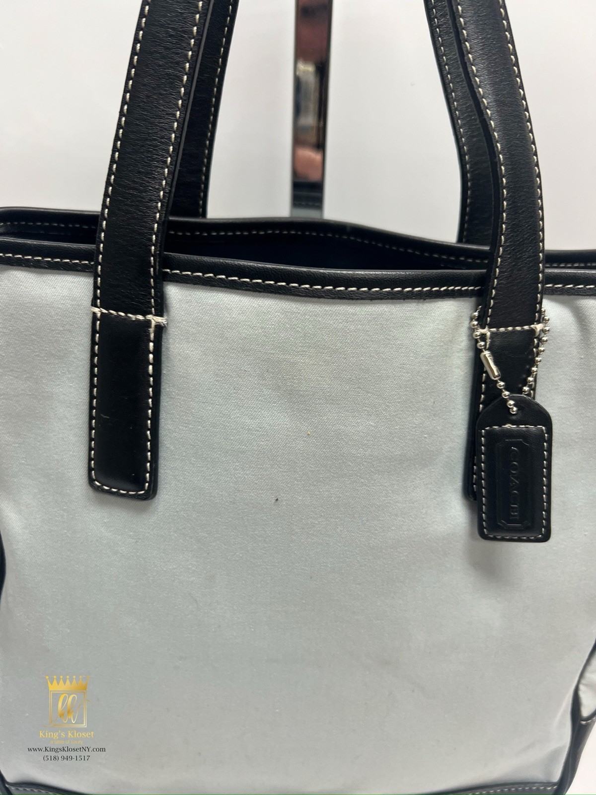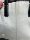 Coach canvas leather trimmed handbag 10x4x10 3 interior compartments All closures are functional. The item shows signs of wear from normal use- Stains and discoloration on exterior, Worn leather, Marks throughout, Dirty interior, Etc. Please refer to photos for further details. In store and our website for $45 JASK8458