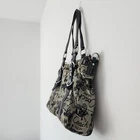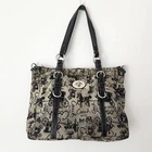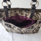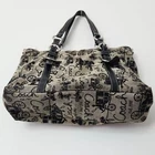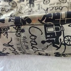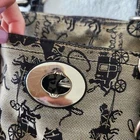 Coach Chelsea Horse and Carriage Turn Lock Stagecoach Tote Shoulder Bag - Rare Coach Chelsea Horse & Carriage print in black and gray, Coach est. 1941 printed throughout - Gray canvas body with black leather handles and accents - Turn lock front compartment, buckle detail on front - Top zip main compartment, burgundy purple lining with interior pockets - Back open slip pocket for easy access - Silver hardware, rings on front embossed with Coach logo - Pre-loved condition, missing Coach fob and crossbody strap; signs of wear and marks as pictured. Such a cute everyday bag. Its roomy interior makes it so easy to bring along all your essentials! Perfect for work or school. Measurements: Width: 15 in across Length: 10 in tall Depth (measured purse bottom): 3.5 in Strap Drop: 8.25 in Style # G0968 - F14033. tags: vintage coach bag y2k 90s school work purse handbag unique rare neutral vtg designer shoulder tote shopper bag preppy retro buggy stagecoach medium large