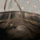 The Coach City Tote Black Signature Logo Shopper Satchel Purse Bag Charm Zip Pocket is a stylish and practical handbag designed for travel, casual outings, and everyday use. It features a rectangular shape with a large size, perfect for carrying all your essentials. The black exterior with gold hardware adds a touch of elegance to the tote, while the black leather handles provide comfort and durability. The bag also includes inner pockets for organization and a zip closure for security. The accessory bag charm adds a trendy touch to this versatile and fashionable piece from Coach's City collection.