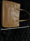 The Coach City Tote in classic tan pebbled leather with gold-tone hardware is a stylish and versatile tote perfect for traveling, everyday use, or as a fashionable statement piece. With a spacious interior featuring inner pockets and a zip closure, this large tote offers both functionality and style. The double handles make it easy to carry, while the gold-tone hardware adds a touch of luxury to the overall design. This classic tote from Coach is a timeless accessory for any wardrobe, with a solid color and sleek City theme that exudes sophistication. Small pen stains in pictures