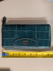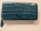 Coach Coral Teal Embossed Leather Zip Around Wallet