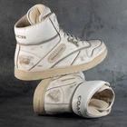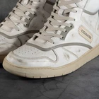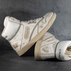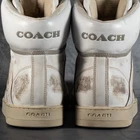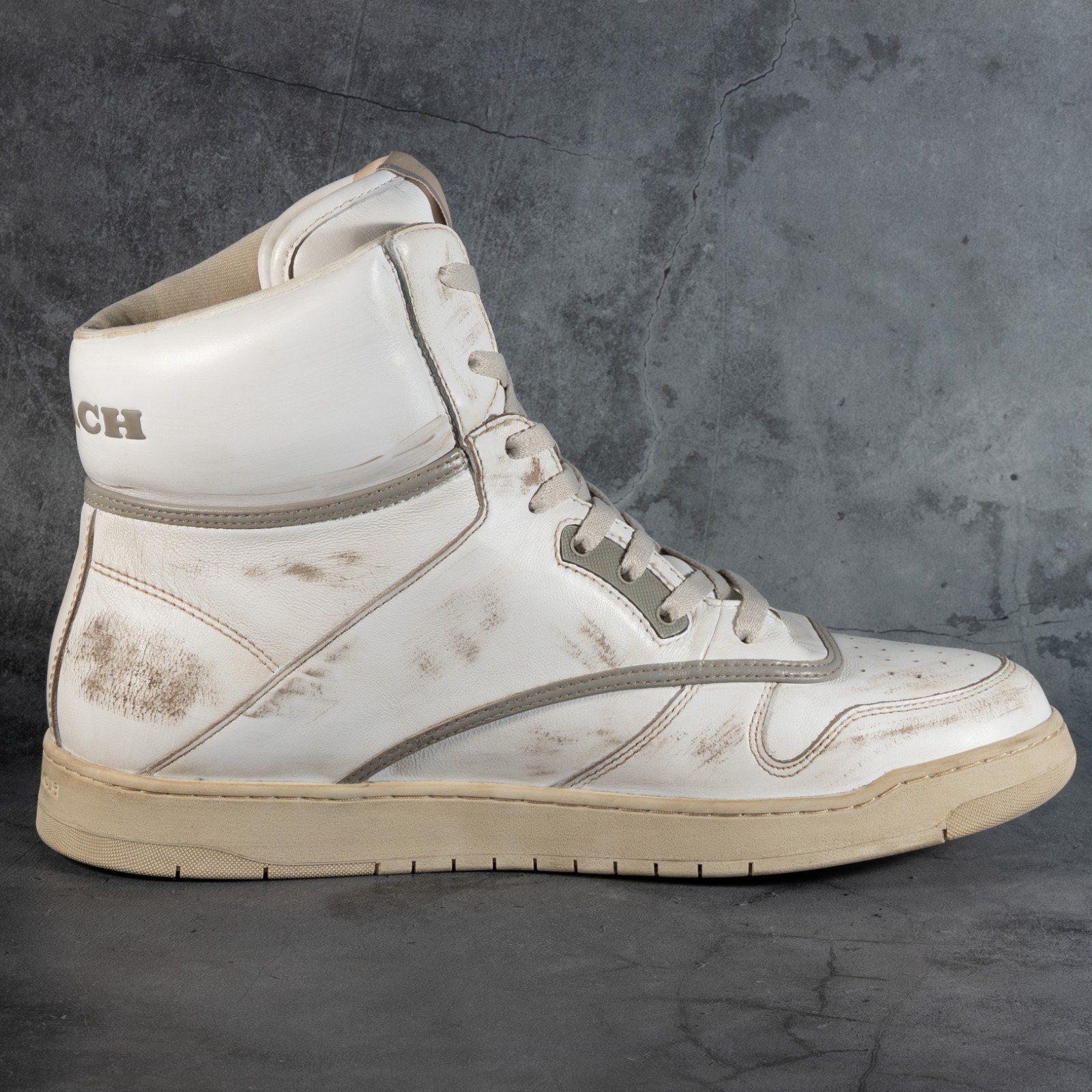 Sneak into style wearing the lace-up COACH Distressed Leather High-Top Sneaker. Featuring textile, synthetic lining and insole, this pair of shoes comes with round toe design and brand detailing on heel counter and sides. Synthetic outsole. Material: Leather Sneak into style wearing the lace-up COACH Distressed Leather High-Top Sneaker. Featuring textile, synthetic lining and insole, this pair of shoes comes with round toe design and brand detailing on heel counter and sides. Synthetic outsole.
