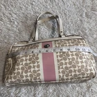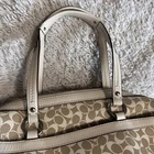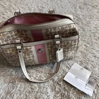 This Coach EST.1941 satchel exudes timeless elegance with its chic design and impeccable craftsmanship. The bag comes in a beautiful light khaki and papaya color combination, with silver hardware accents adding a touch of modern sophistication. The bag features a zip closure, leather handles, and an adjustable shoulder strap, providing versatility and convenience for everyday use. Made from a combination of leather and PVC, this medium-sized satchel boasts plenty of storage space, with pockets to keep your essentials organized and easily accessible. The bag comes with a brand card and bag charm, adding a personal touch to your look. Ideal for women who appreciate classic style and functionality, this Coach satchel is perfect for any occasion.Good condition/size medium/Multi colored/still with tags /Please look at the photos and measurements Feel free to send me an offer /Tiny flaws on the 2nd to the last photos