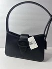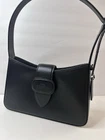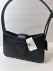 CAA92 Measurements Length: 9.75" Height: 6.5" Width: 2.5" Materials Refined calf leather Fabric lining Handle Adjustable handle with 9.25" drop Features Inside zip pocket Two credit card slots Snap closure, zip-top closure Editor's Notes Our Eliza Shoulder Bag is a timeless design that complements any look. Crafted of refined calf leather, this designer leather shoulder bag has an adjustable strap to fit comfortably on your shoulder. It has a spacious interior to carry your daily essentials, along with an interior zip pocket and two credit card slots for extra organization. Its snap closure keeps everything secure. Whether you're hitting the town for date night or meeting friends for coffee, this over the shoulder leather bag is the perfect companion for your every day. Black leather Open box