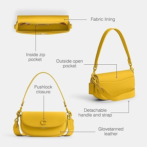 The little bag that's kind of a big deal, our Emmy is a modern, equestrian-inspired saddle bag. The compact go-everywhere style is crafted of buttery soft glove tanned leather detailed with our durable tonal matte PVD coated hardware. Featuring pockets inside and out for easy organization, it’s finished with two detachable straps to wear as a snug short shoulder bag or a hands-free crossbody. (Wear it your way.) Editors Notes: Our Monochrome Emmy Saddle Bag in glove tanned leather is a streamlined crossbody bag for creating effortless but put-together looks Glovetanned Leather: Wear it out to wear it in. This women's shoulder handbag is crafted with glovetanned leather - a buttery soft, durable leather that only gets better with age Style Three Ways: Carry in hand by the top handles, or use the detachable strap to style as a shoulder bag or crossbody bag It's All in the Details: Inside zip pocket, pushlock closure, fabric lining, detachable handle with 8 1/4" drop, outside open pocket, detachable strap with 21 1/2" 9" L x 5 1/4" H x 2" W This is COACH: Having the courage to be real since 1941. COACH is the Original American House of Leather - with a legacy of craft and a community that champions the courage to live authentically
