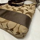 $ 7.92Coach Signature Tan Raspberry Stripe Shoulder Bag with Patent Leather Trim GUC