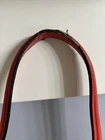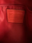 This Coach Soho tote is a stylish and versatile addition to any wardrobe. The khaki vermilion color, signature pattern, and Emma character make it a unique piece. The magnetic closure, adjustable beige straps, and folding design make it practical for everyday use. The tote is made of canvas and leather, and features silver hardware. The interior is lined in orange red, and there is enough space for large size items. This Coach tote is animal cruelty-free and vegan, making it a great choice for those who want to avoid leather products. See pictures for details