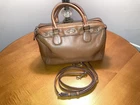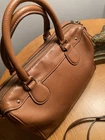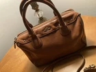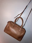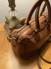 Elegant Coach Satchel in a stylish tan/brown leather exterior. Great Condition* Very little wear, well maintained satchel as shown in pictures * Price is “Discounted as a Holiday Sale” This beautiful medium-sized satchel has a roomy interior with two pockets. It can be carried with top handles or with its detachable crossbody strap. Approximate Measurements: * Length: 9.25 inches * Height: 7.0 inches * Width: 4.25 inches Perfect for any occasion.