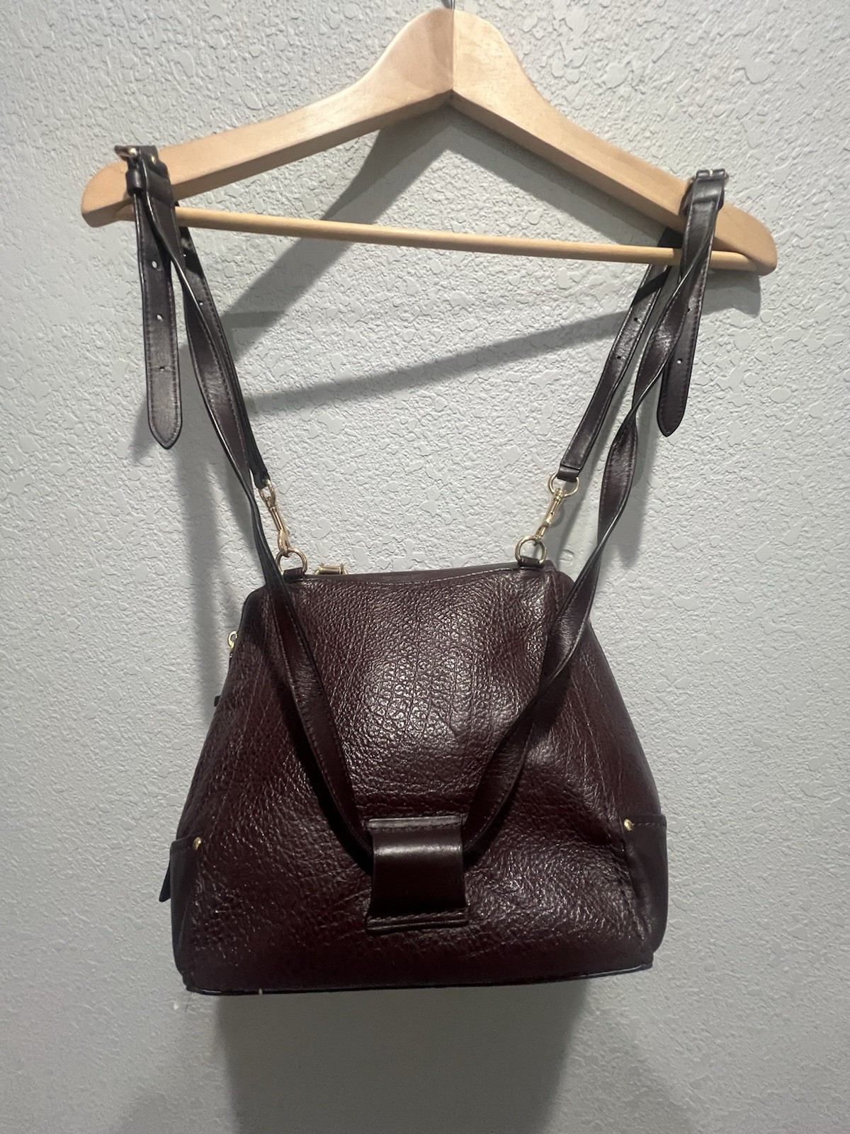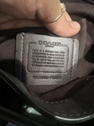 The Coach Faye 2 Way Convertible Dark Purple Shoulder Crossbody Backpack is a versatile and stylish medium-sized bag perfect for various occasions such as travel, weddings, parties, casual outings, formal events, workwear, and business meetings. Made from leather with a pebbled finish, this square-shaped bag features a midnight blue adjustable handle/strap, gold hardware accents, and a zip and turn lock closure. The interior is lined and includes inner and outer pockets for organization. With its convertible design, this backpack can be worn as a shoulder bag or top handle bag, adding flexibility to your outfit. The rare Coach Faye model is a classic designer piece that is sure to make a statement. Sold as is Missing a piece of the hardware