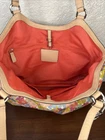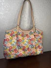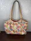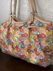 The Coach Tote Bag features a beautiful logotype flower motif on canvas and leather, making it a stylish and unique accessory for women. With a medium size and shoulder bag style, this Coach Peyton model showcases a colorful floral pattern on the multicolor exterior. Crafted from high-quality canvas material, this tote bag is both fashionable and durable for everyday use.