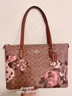 Coach Gallery Tote Bag In Signature Canvas With Rose Print Brand new with tags 100% Authentic GUARANTEED Brand New With Tags Style: CZ180 Color: Tan Multi Retail Price: $378.00 + Tax . Signature coated canvas . Inside zip and multifunction pockets . Zip-top closure, fabric lining . Handles with 10 1/2” drop . Outside zip pocket . Gold tone hardware . Approx.: 14 1/2" (L) x 9 3/4" (H) x 6" (W) . Dust bag NOT included Price is firm