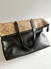 Signature coated canvas and refined calf leather Inside zip, cell phone and multifunction pockets Zip-top closure, fabric lining Handles with 5" drop Outside zip and slip pockets Detachable strap with 53" drop for shoulder or crossbody wear 14" (L) x 15 1/2" (H) x 3 1/4" (W) Style No. F72528 💬any questions feel free to contacto me ✅30 days free returns under no description listing ✅same day shipping ✅shipped with care ✅bag is like new🫶
