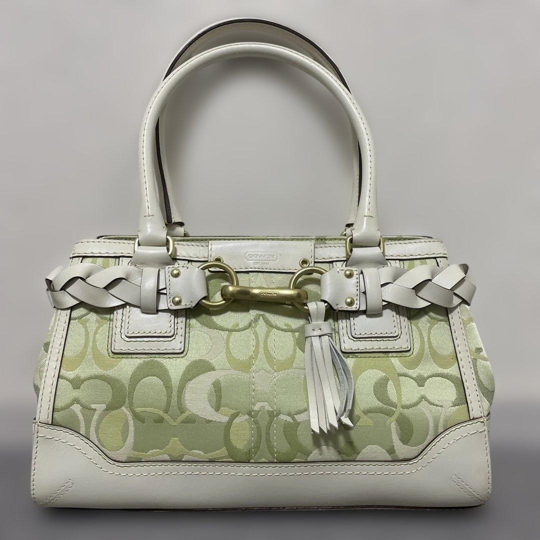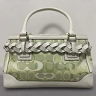 Coach Signature Tassel Bag Handbags Canvas Leather Green Used From Japan Description Brand: Coach Product Name: Signature Tassel Bag Color: Green Payment We only accept PayPal payments. Please pay within 6 days after auction is finished. International Buyers - Please Note Import duties, taxes and charges are not included in the item price or shipping charges. These charges are the buyer's responsibility. Please check with your country's customs office to determine what these additional costs will be prior to bidding/buying. These charges are normally collected by the delivering freight (shipping) company or when you pick the item up - do not confuse them for additional shipping charges.