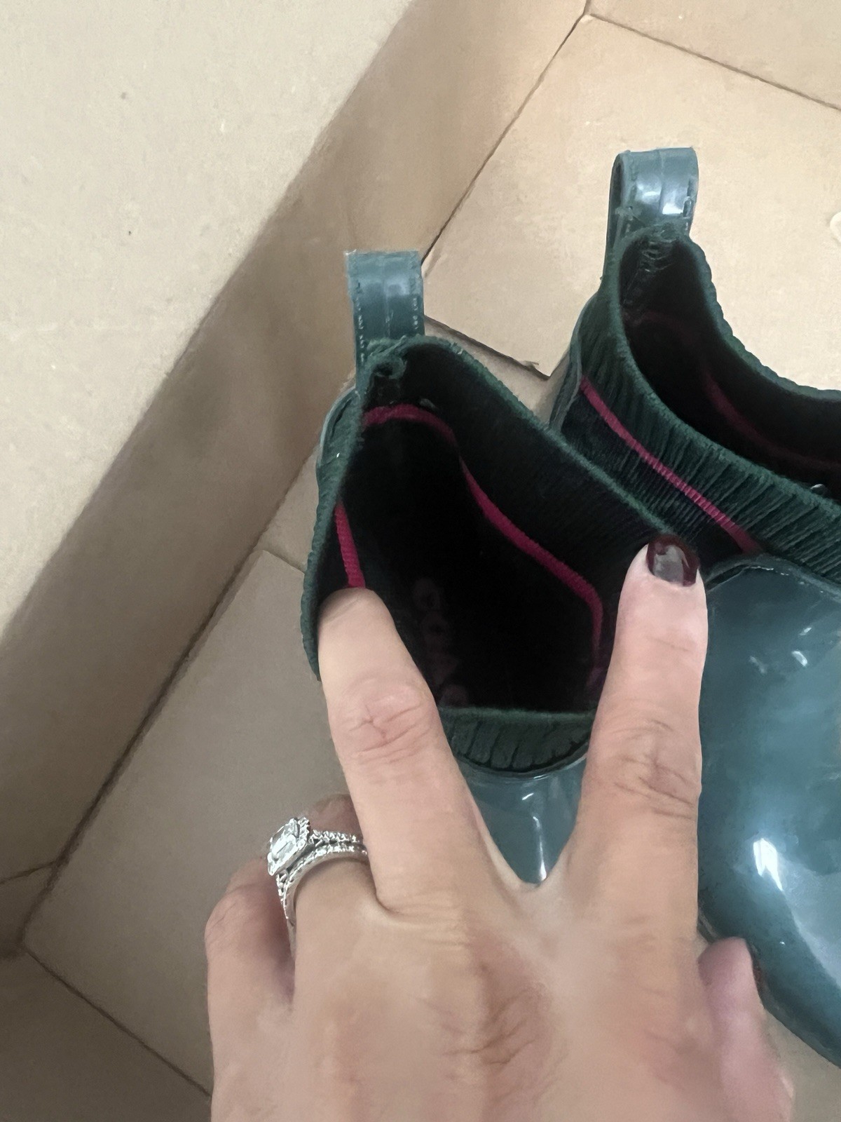 Emerald green coach rain boots worn 2x's. They are too narrow for me, but beautiful!