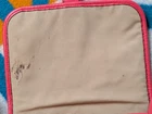 Took up close pics to show any wear. Discoloration spots on inside of purse liner. On bottom corner of purse there are darker spots from putting purse down. Approximately 9x6