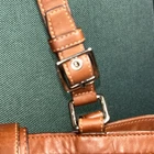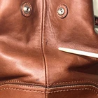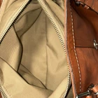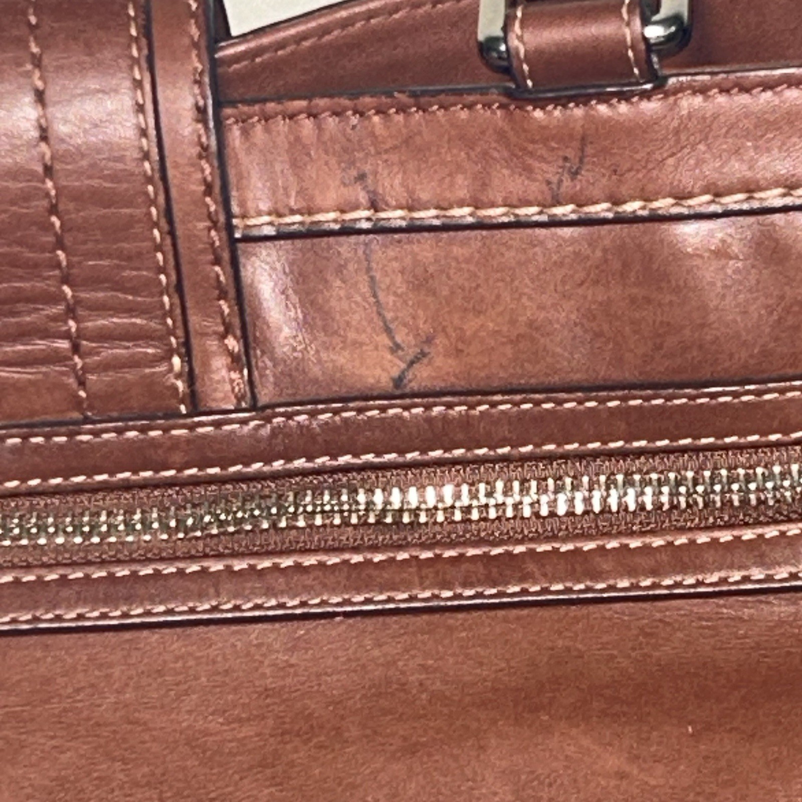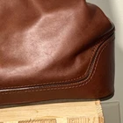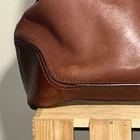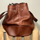 Cleaned and conditioned. Please see photos for any flaws: -Pen marks (one on back and one on the bottom). -Wear at corners. -Light scuffing. -No hang tag. -Lighter areas on bottom. -Stain on line. 14 inches wide. 9 inches high. 6 inches deep at base. Color may vary due to lighting and screen settings. With any pre-owned items, expect signs of wear. Usually ships next business day.